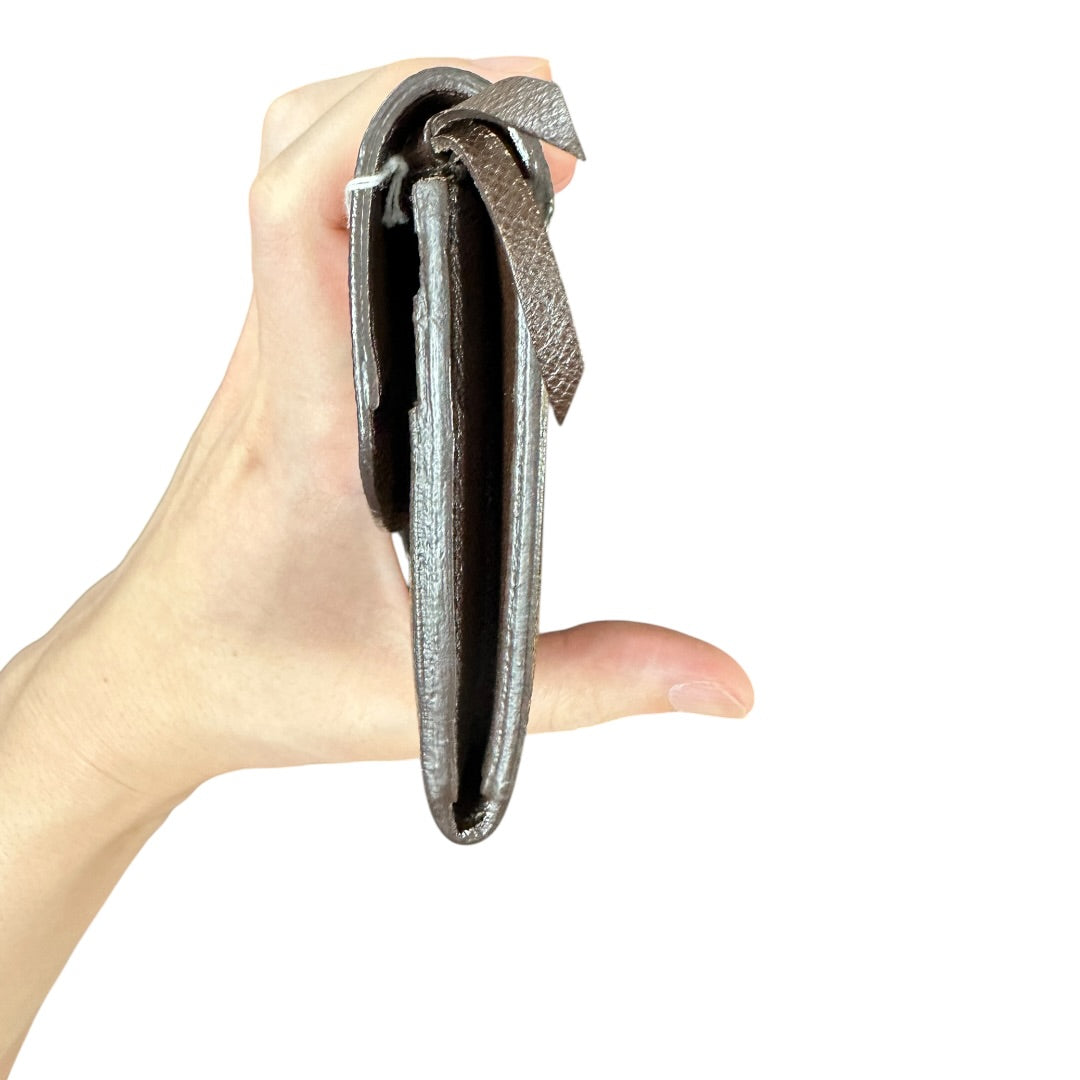 Features: Snap button flap closure, zippered coin compartment, bill compartments, and credit card slots.