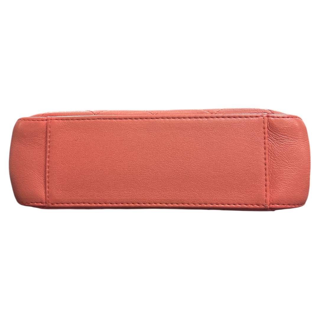 Stylish coral pink Matelassé shoulder bag with chain strap.