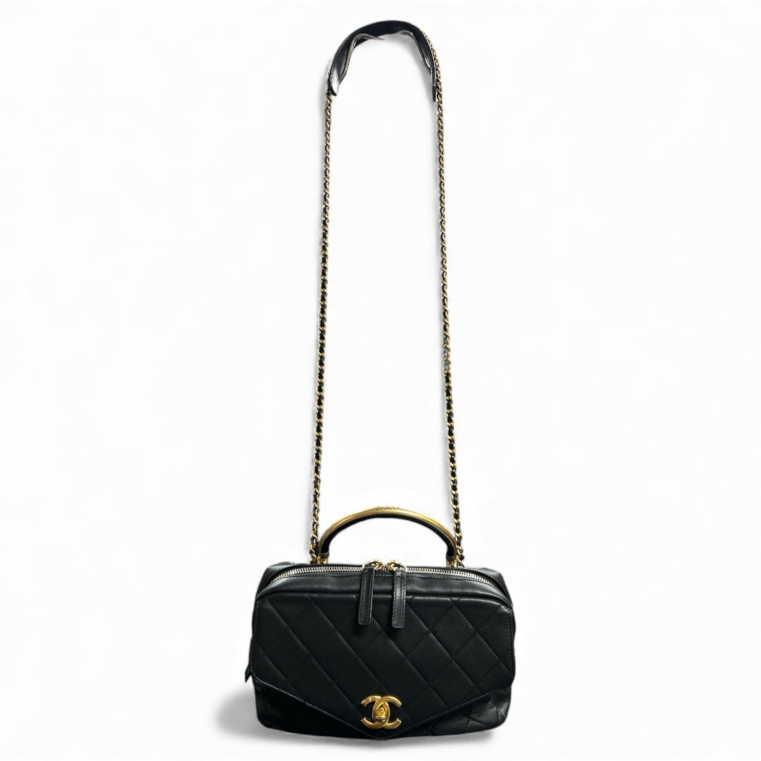 Chanel Matelassé quilted design lambskin black shoulder bag with chain strap.