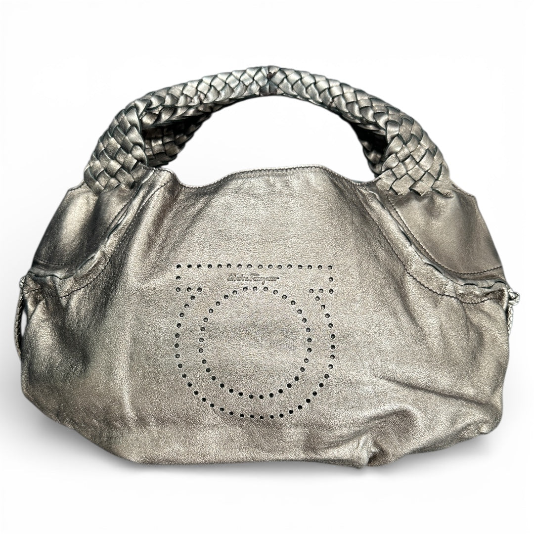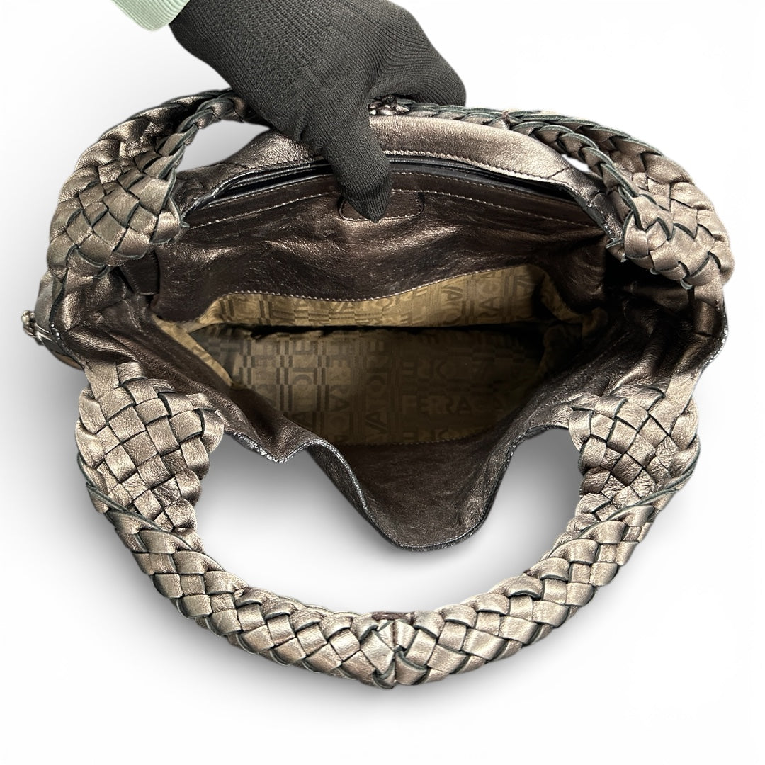 Ferragamo Leather Handbag Medium Size Braided Handle Fe339