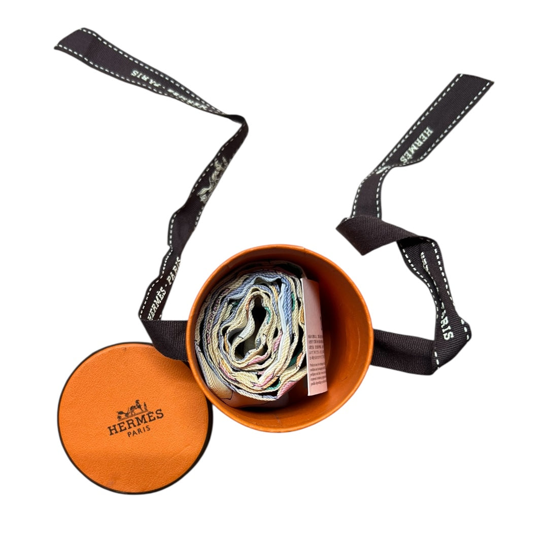 HERMES Twilly Carres Volants Silk Scarf Cream Blue Multicolor HE437