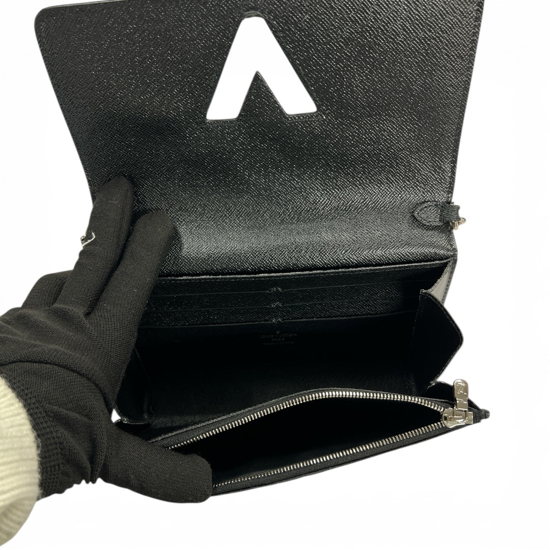 Black and gold chain pattern shoulder wallet bag in Epi leather.