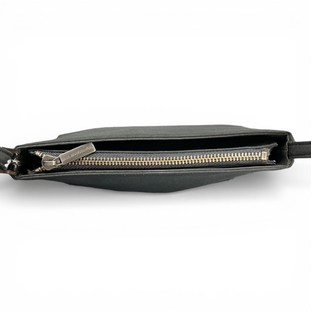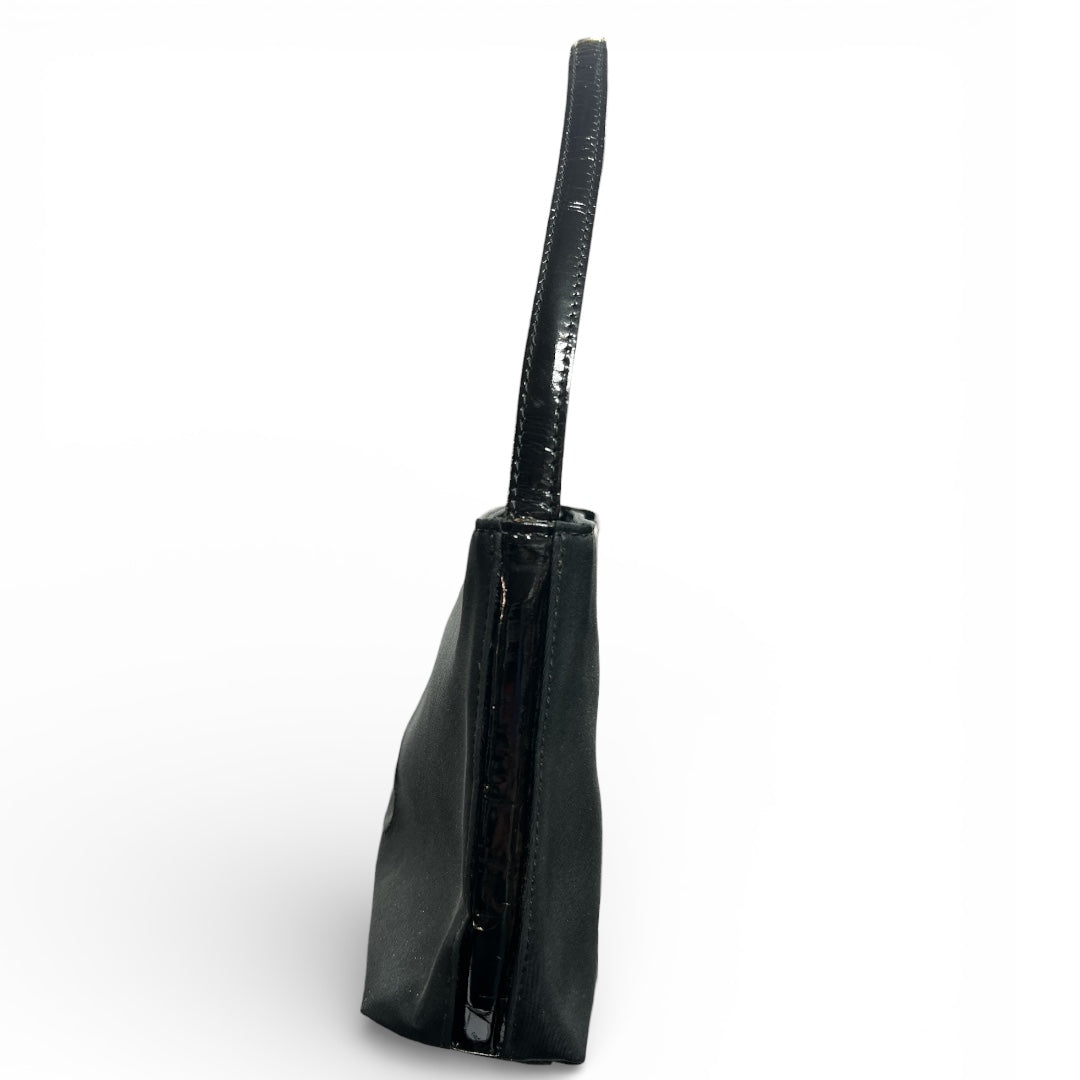 A simple and stylish black nylon handbag, perfect for casual styles.