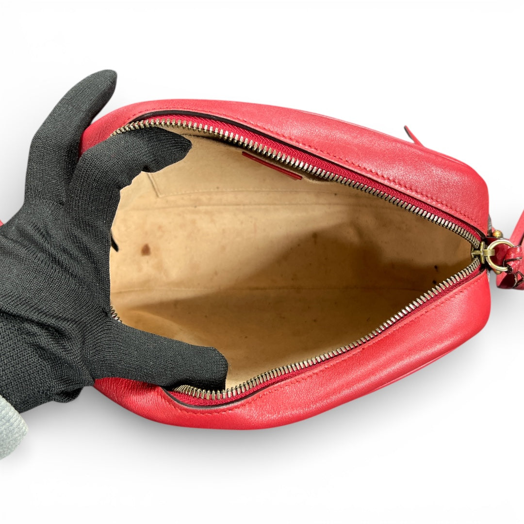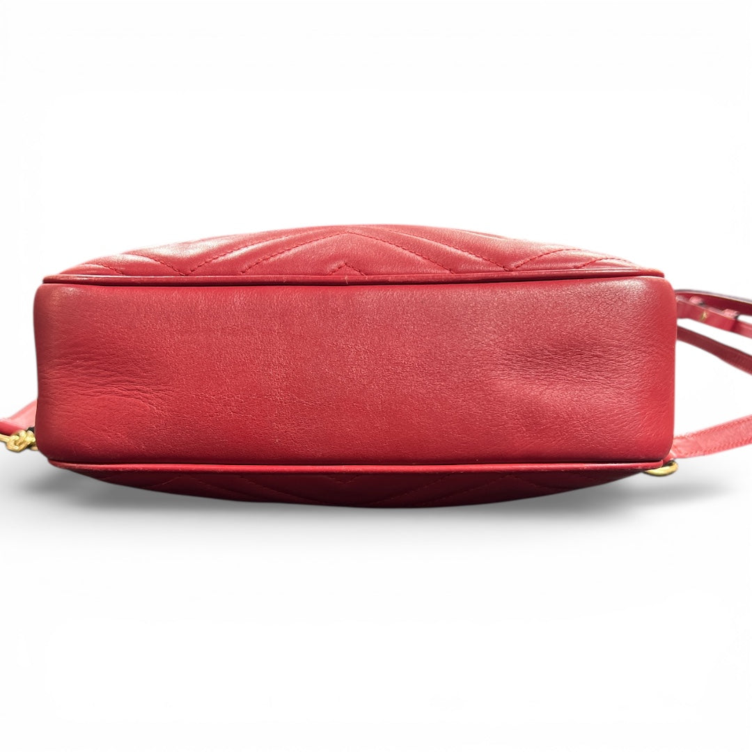 Red shoulder bag featuring the GG logo and chain strap.