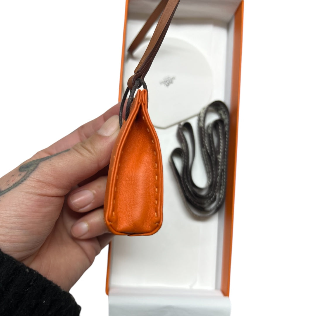 HERMES Sac Orange Bag Charm Orange Leather Handbag Charm HE436